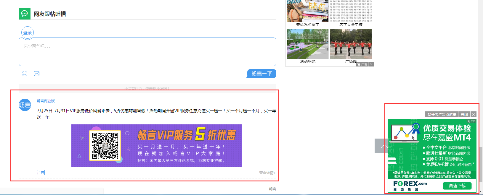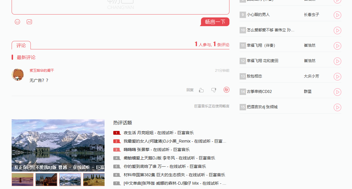 使用了畅言评论的网站,在评论去都可以看到两个广告(如下图)。作为评论系统,而且是免费试用的,没有收益很难活,其实也能理解,但是这种强制性的加入很让站长们反感的(在第一眼看到这个广告的时候,以为是增加站长收益的,而畅言拿一部分分成,是太天真了)!重要的是,既影响美观,有影响网站的流畅度,特别是网站在特别的情况下,可能无法打开,就是因为里面有畅言广告的原因。废话不多说,下面步入正题。